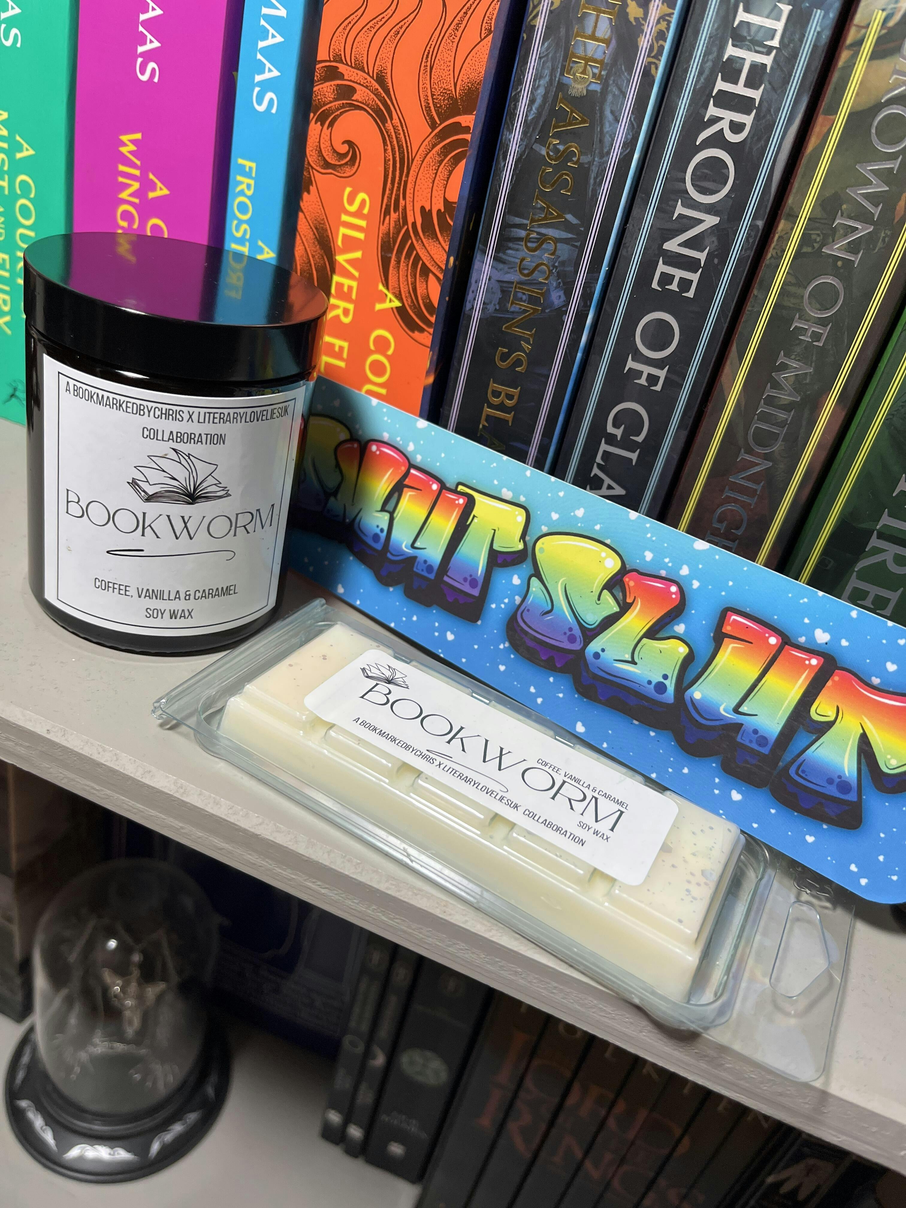Bookworm Bundle includes 1 Bookworm Candle & 1 Bookworm wax bar